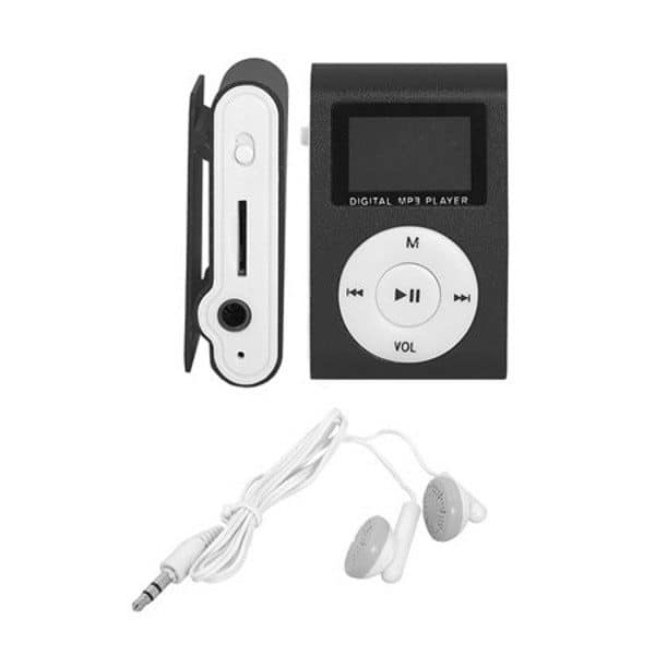 Leitor de MP3 com suporte para cartões micro SD 100% novo e de alta qualidade. De tamanho pequeno, portátil e fácil de transportar. Vem com auriculares e cabo USB para carregar.
